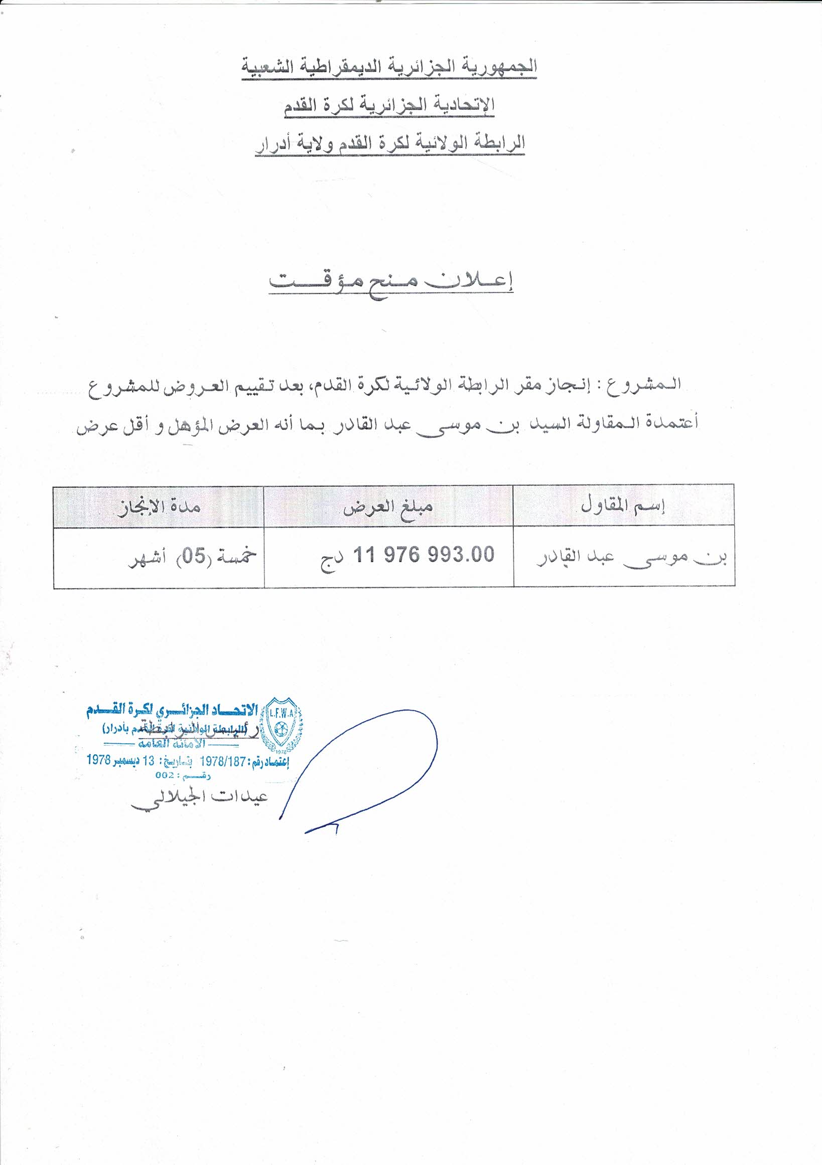 إعلان منح مؤقت لإنجاز مقر الرابطة |