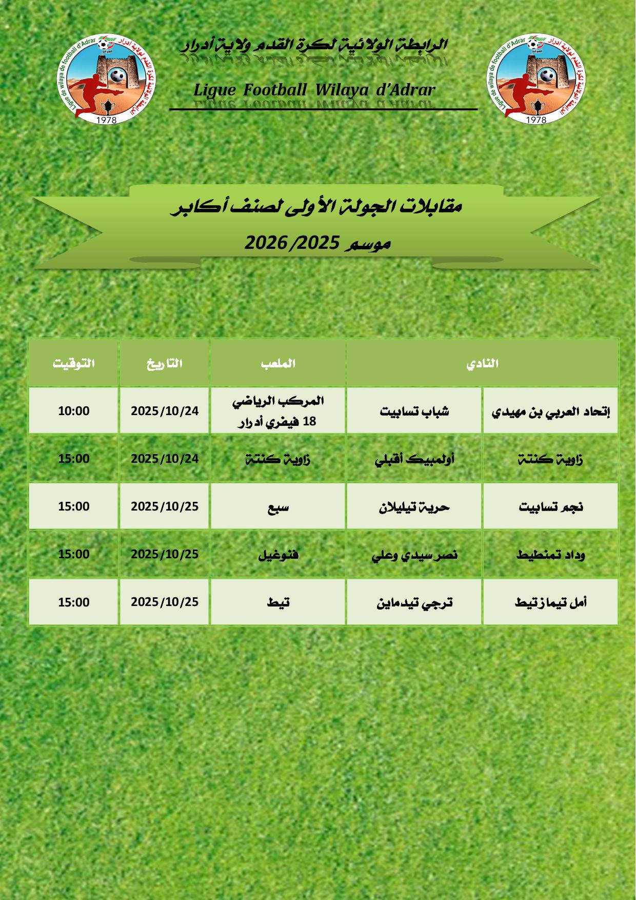 جميع الحقوق محفوظة © 2023 - 2025 الرابطة الولائية لكرة القدم - أدرار.
