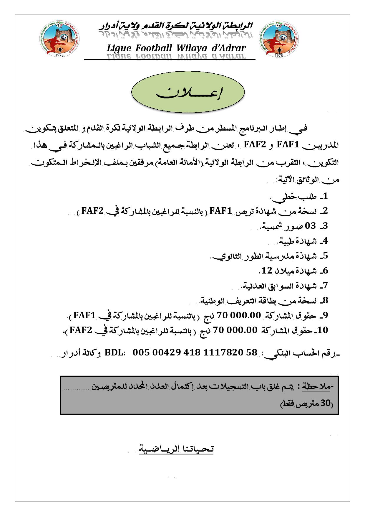 إعلان بخصوص تـكوين المدربيـن FAF1 و FAF2