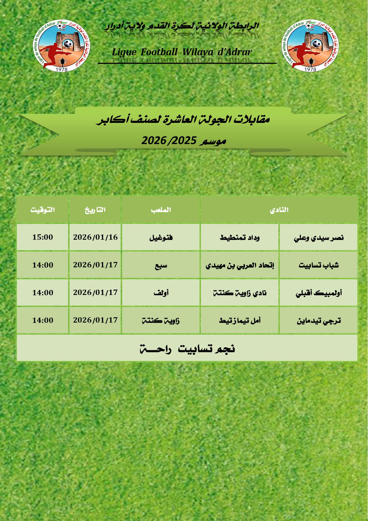جميع الحقوق محفوظة © 2023 - 2026 الرابطة الولائية لكرة القدم - أدرار.