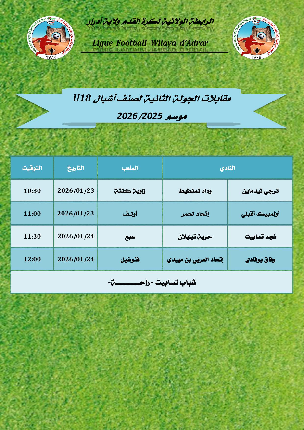 جميع الحقوق محفوظة © 2023 - 2026 الرابطة الولائية لكرة القدم - أدرار.