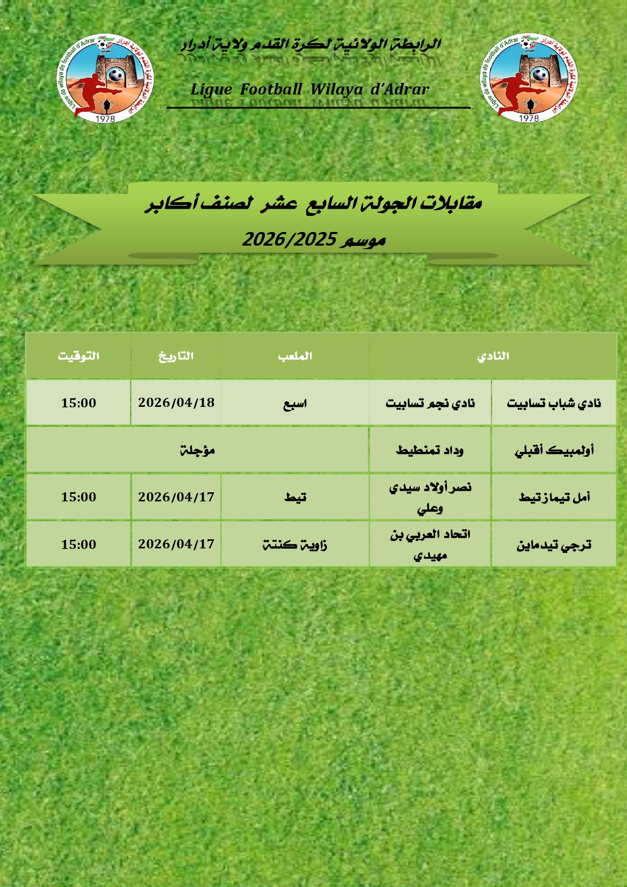 جميع الحقوق محفوظة © 2023 - 2026 الرابطة الولائية لكرة القدم - أدرار.