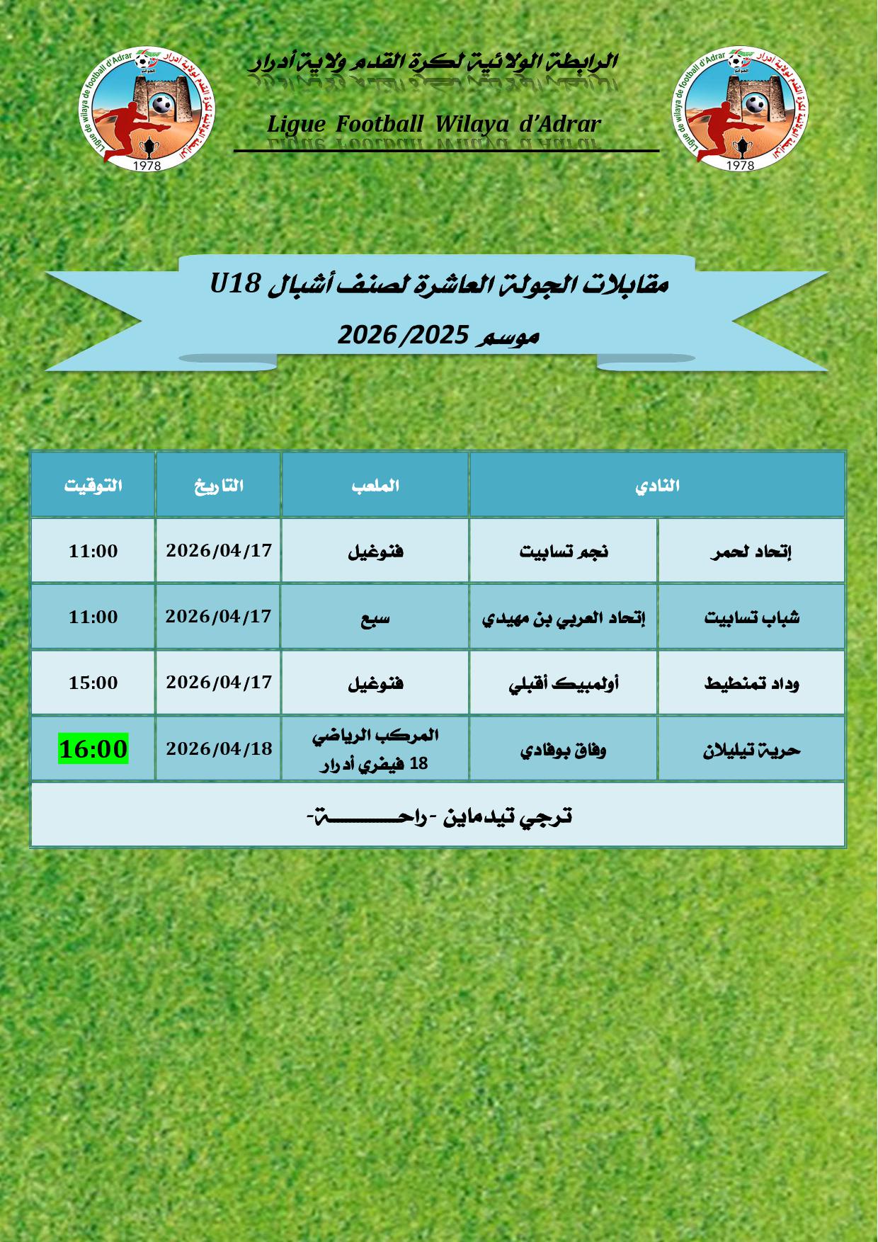 (تعديل) برمجة الجولة 10 من بطولة 18U